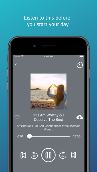 Affirmations Positive Thought är en livsstilsapp för iPhone som fokuserar på hälsa och välbefinnande genom ljudaffirmationer. Användare kan lyssna på nya bekräftelser varje torsdag, vilket ger en kontinuerlig källa till positivt tänkande. Appen erbjuder möjligheten att ladda ner berättelser för offline-lyssning, vilket gör det enkelt att inkludera affirmationer i vardagen, oavsett var du befinner dig. En sömntimer är också tillgänglig, vilket gör det möjligt att lyssna på affirmationer innan du somnar.